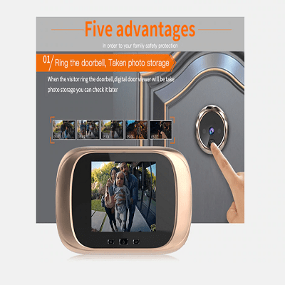 Sa jedne strane se nalazi kamera koja izgleda kao spijunka, a sa unutrasnje monitor, na kome mozete videti ko je sa dr strane vrata.
