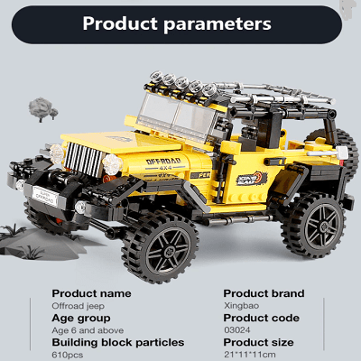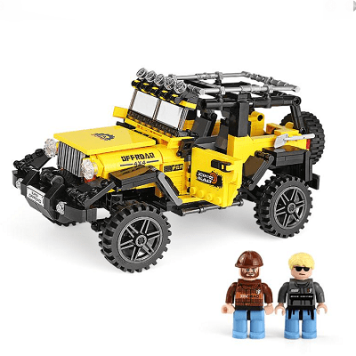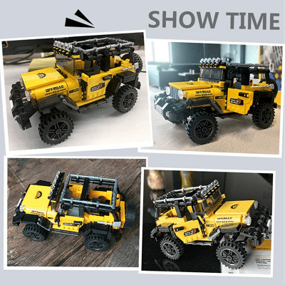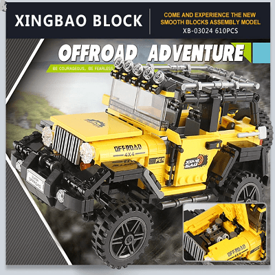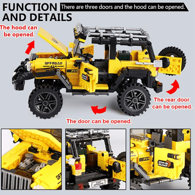Potpuno novi set kockica sa uputstvom za sklapanje. Iskreno, nesto najbolje sto je izaslo od igračkica na sklapanje. Ovo nije mali džip, duzina je 21 cm i sastavlja se iz 610 delova koje sačinjava ovaj set.