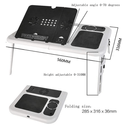 Rasklopivi sto za računar sa dva kulera. Bukvalno 100 vrsta podešavanja ima tako da će sigurno odgovarati i onim baš zahtevnim korisnicima. Neke od bitnih funkcija su podešavanje nagiba, visine nogara. Na sebi ima i dva kulera sa standardnim USB ulazom. Na jednoj od slika se nalaze i dimenzije pa možete pogledati.