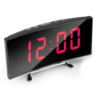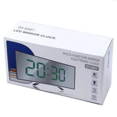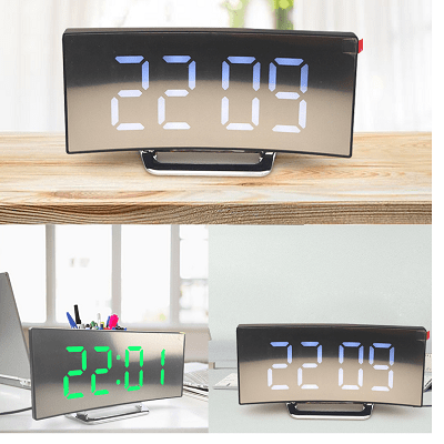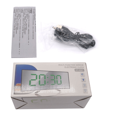 Moderan sat sa ogledalom, alarmom, funkcijom odlaganja, prikazom temperature i podesivom osvetljenoscu ekrana sa prigusenim svetlom tokom noci.