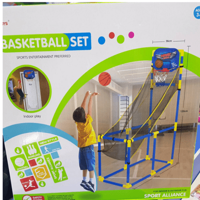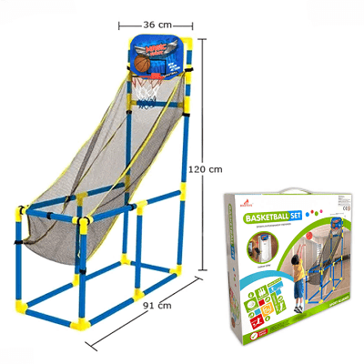 Set za košarku. Totalno je rasklopiv, dobijate uputstvo za sklapanje. Visina konstrukcije je 120 cm, dužina 91 cm a širina 36 cm