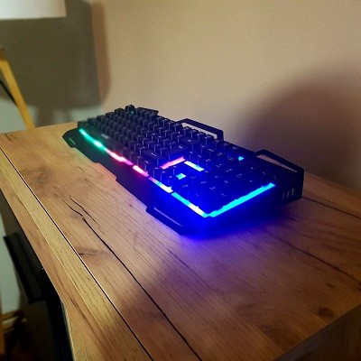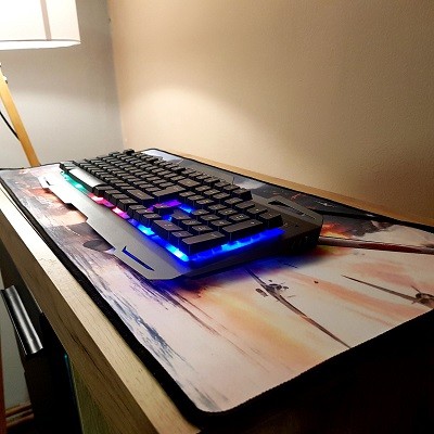 Tastatura koja definitivno nema konkurenciju kad je u pitanju odnos cene i kvaliteta. Metalni okvir, led osvetljenje. Na sve to već savršeno, dodali smo i podlogu koja je dužine oko metar. Ispod podloge se nalazi materijal koji joj ne dozvoljava da se kliza. Miš leti po njoj. Što se tiče povezivanja tastature, USB port bez instalacije drajvera. Radi na svim operativnim sistemima. Pozadinsko osvetljenje možete isključiti po želji.